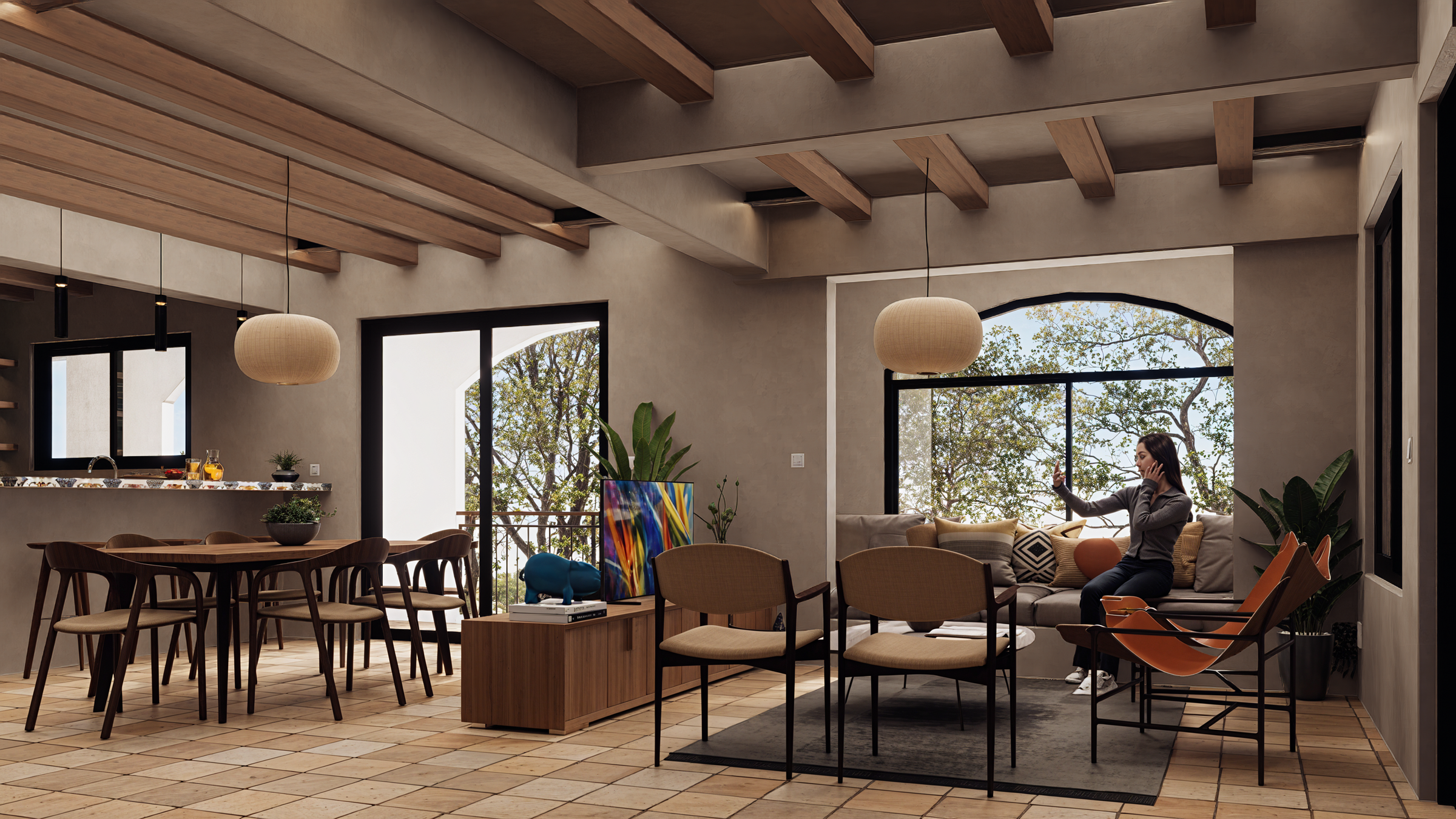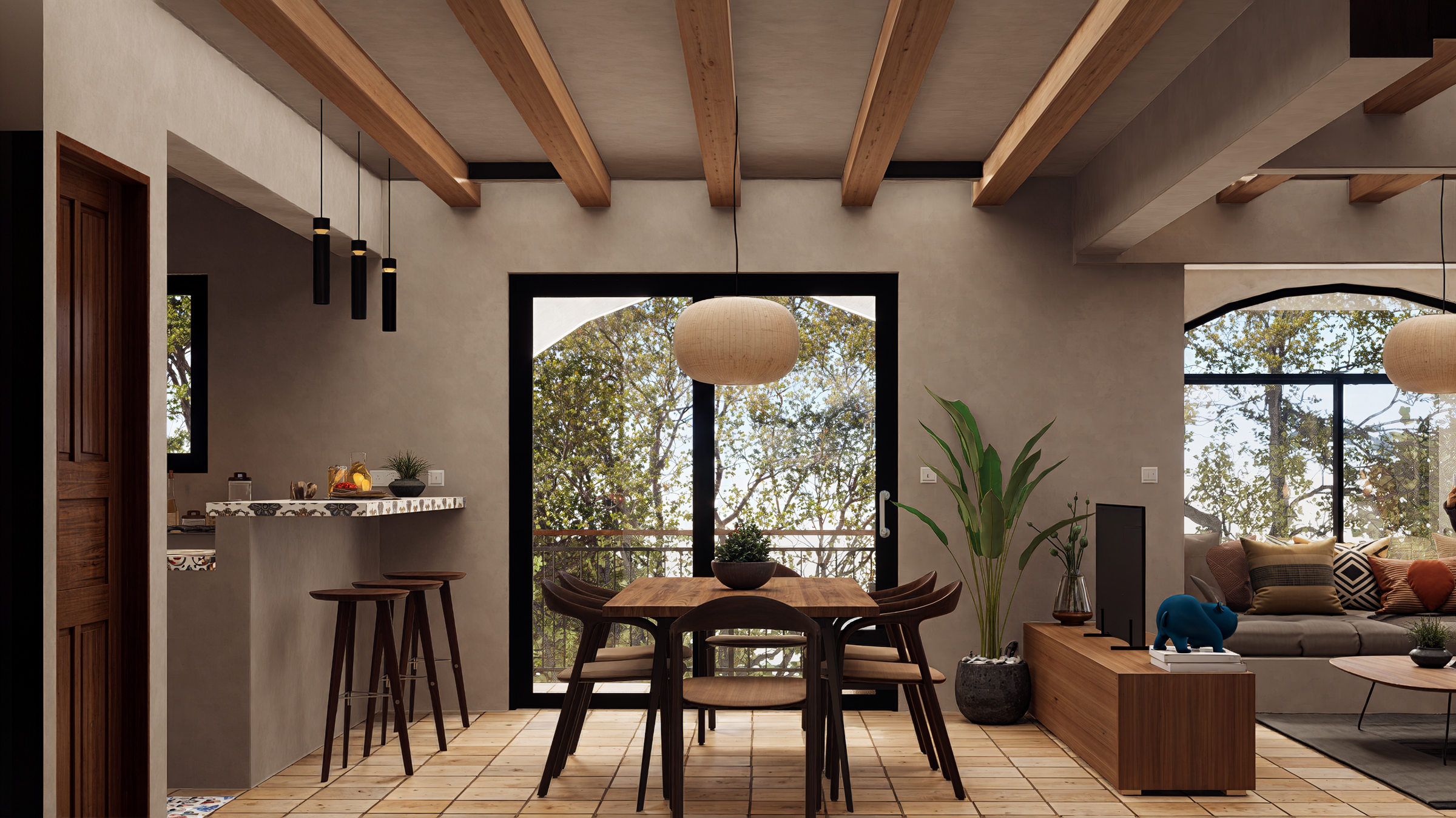 Realizar un diseño inspirado por la arquitectura mediterranea de marruecos y españa pero adaptada a la selva tropical de Costa Rica.